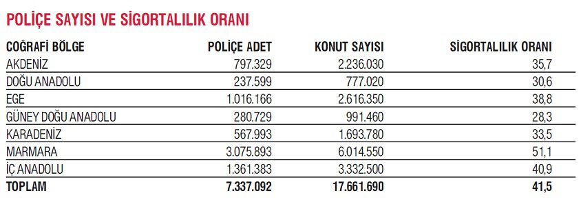 Elektrik ve su aboneliği alırken, tapu işlemleri sırasında ve konut kredisi çekerken vatandaşa deprem sigortası yaptırmasının zorunlu olduğu söyleniyor, ZDS poliçesi almadan işlemleri gerçekleştirilmiyor. Bu düzenleme ile zorunlu deprem sigortalı konut sayısında ciddi bir artış yaşandı. DASK’ın son verilerine göre sigortalılık oranı 41.5 oldu. ZDS poliçe sayısı ise 7 bin 340’a yaklaşmış durumda.