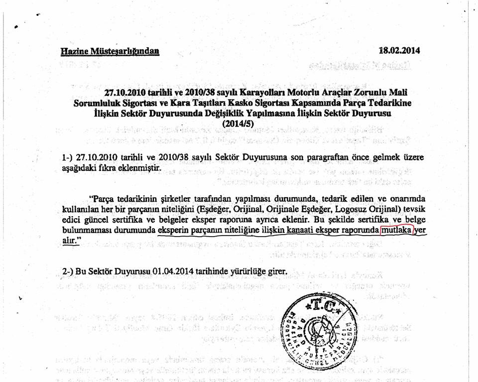 SAYIN SİGORTA ACENTELERİ ; BU MADDENİN SONUNA KADAR TAKİPCİSİ OLACAĞIZ